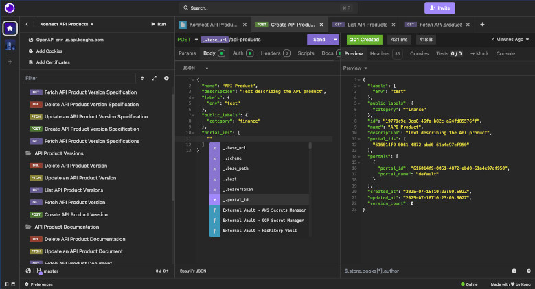 Au-delà du simple envoi de requêtes, Insomnia offre des fonctionnalités dédiées à la conception et à la validation d’API. Il dispose notamment d’un éditeur OpenAPI avec aperçu visuel, permettant de structurer et documenter une API directement depuis l’interface. Des outils de test sont également intégrés, avec la possibilité de créer des suites de tests automatisées et d’exécuter des collections complètes afin de vérifier le bon fonctionnement des endpoints.