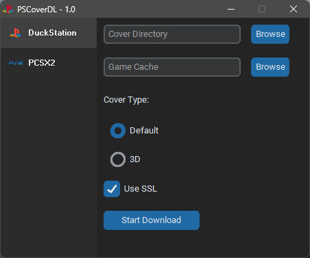 L’interface graphique de PSCoverDL a été pensée pour être simple et accessible. Elle vous permet de sélectionner l’émulateur ciblé, de préciser l’emplacement des fichiers cache et des dossiers de destination des images, puis de lancer le processus de téléchargement en quelques clics. Le logiciel prend en charge à la fois les bases de données PS1 et PS2.