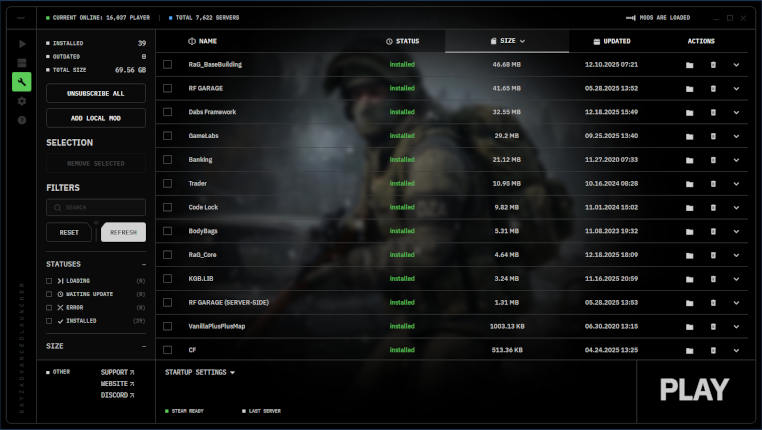 Une des fonctions centrales du logiciel concerne la gestion des mods. DZA Launcher permet de télécharger, d’installer et de mettre à jour automatiquement les modifications nécessaires pour rejoindre un serveur. Cette automatisation évite d’avoir à manipuler manuellement les fichiers ou à rechercher chaque mod séparément, ce qui simplifie considérablement la préparation d’une session de jeu.