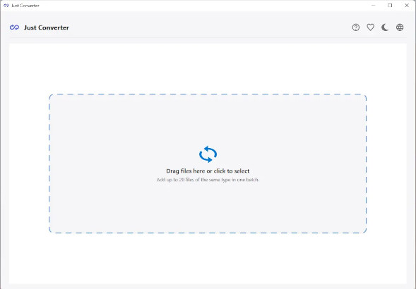 Just Converter met l’accent sur la simplicité du processus de conversion. L’interface est pensée pour guider l’utilisateur à travers les étapes essentielles, depuis l’ajout des fichiers jusqu’au choix du format de sortie et au lancement de la conversion.