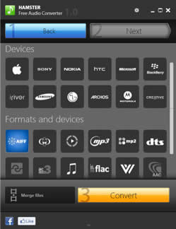 Le programme encodera le fichier audio au bon format (AIFF, OGG, WMA, MP3, MP2, AC3, AMR, FLAC, WAV, ACC, VOC, RM...), en fonction de l'appareil sélectionné sur lequel vous voulez écouter votre musique (iPod, iPhone, iPad, Archos, Zune, iRiver, Sony, Nokia, HTC...).
