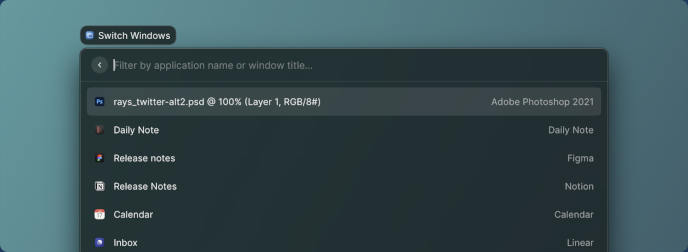 Au lieu de naviguer dans des menus ou d’utiliser la souris pour ouvrir des programmes ou exécuter des tâches simples, Raycast vous permet d’exécuter la majorité de ces opérations directement depuis une seule interface déclenchée par un raccourci clavier.