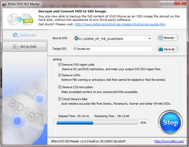 Le programme se charge de nettoyer votre DVD de tout le contenu affiché au début du DVD comme l'UOPs (FBI warning, anti-piracy, clip anti-téléchargement...), retire les restrictions liés aux régions géographiques du DVD (RC, RCE qui rendent incompatible un DVD étranger avec un lecteur DVD ou une platine de salon), ainsi que tous les cryptages qui peuvent verrouiller un DVD comme CSS, CPRM, CPPM, APS, UOPs, ARccOS, Rip-Guard ou Disney X.